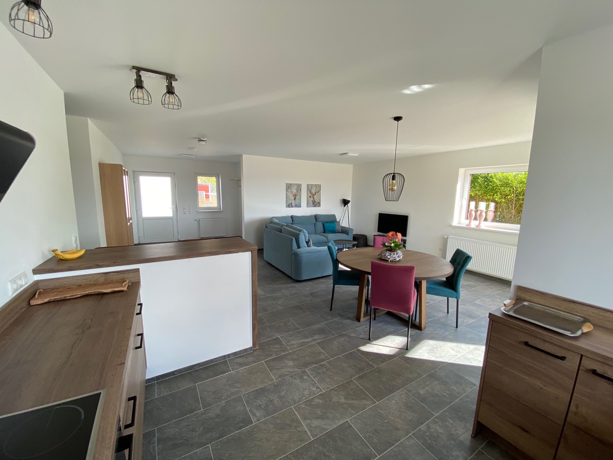 Woonruimte: ruime woonruimte met gezellige en comfortabele hoekbank, LG smart tv, Ikea (Sonos) bluetooth speaker, grote openslaande deuren naar terras/tuin, ruime hal