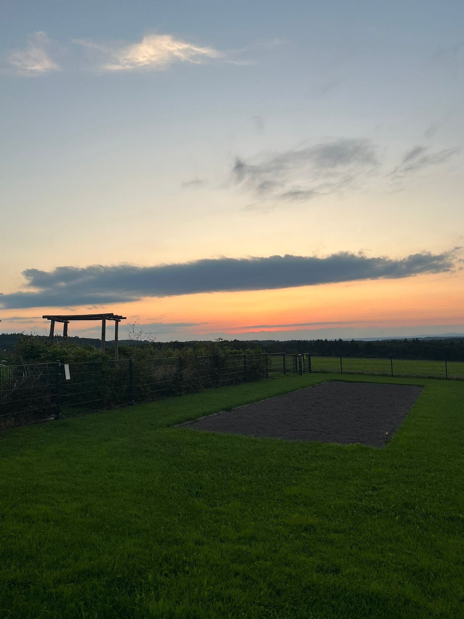 Buiten en uitzicht: eigen terras met gedeelte onder afdak, jeu de boules baan, omheinde tuin met gras van maar liefst 1200m2, adembenemend uitzicht met ondergaande zon, achterpoort van de tuin ligt direct aan het wandelpad naar de hangbrug