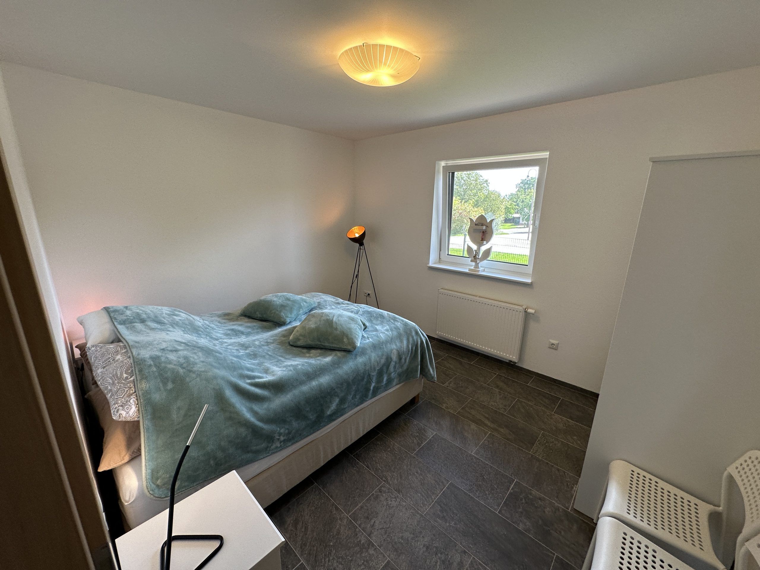 Slaapkamer 2: 2 luxe boxspring bedden aan elkaar vast, 1 kledingkast, 1 ladekast, 2 nachtkastjes, aan voorzijde van het huis, raam met rolluik